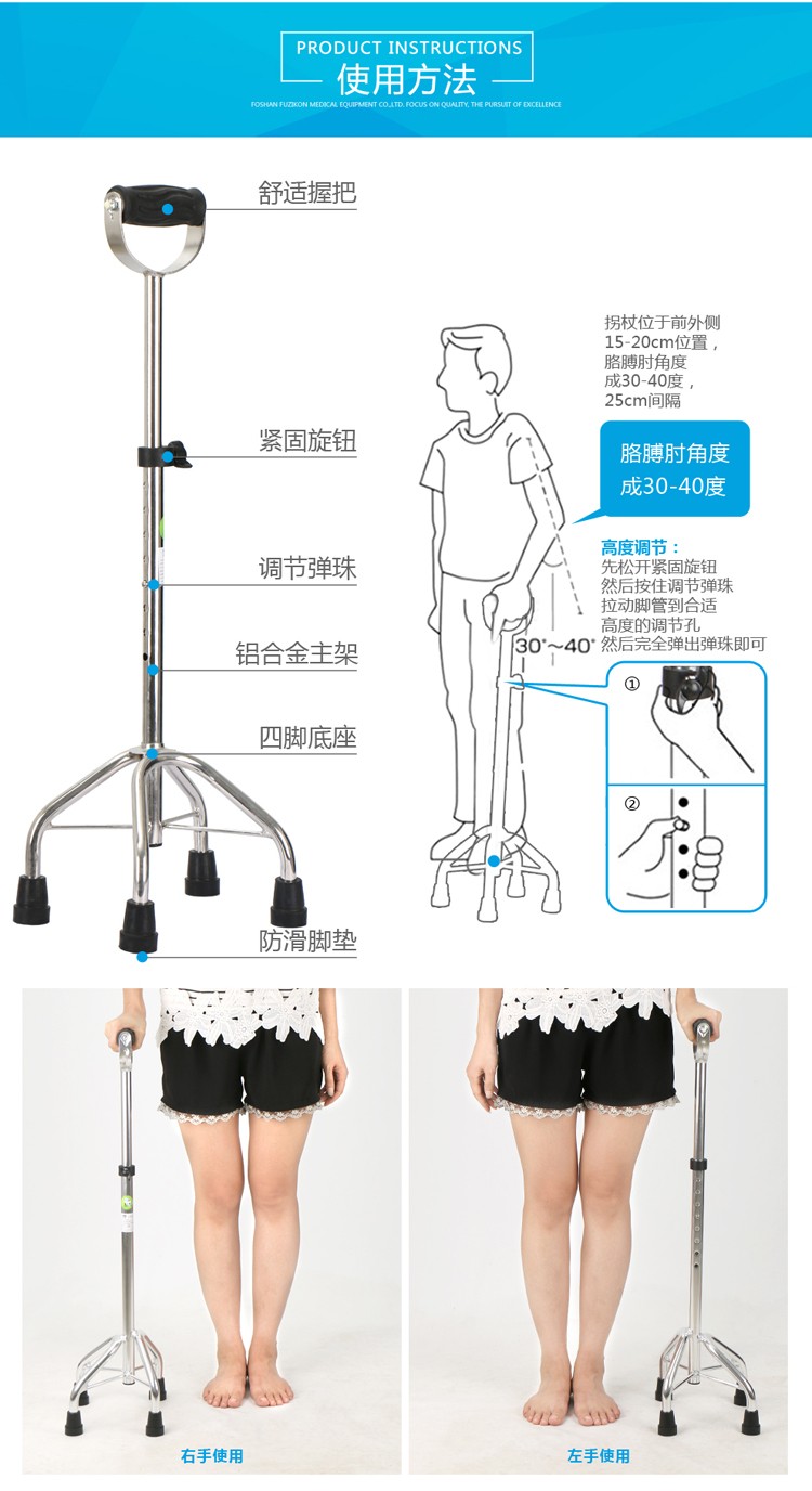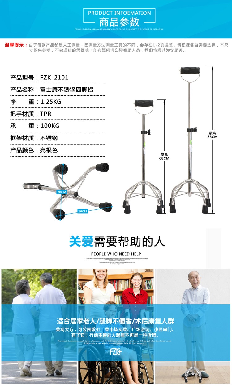 FZK-2101 Stainless steel quad cane