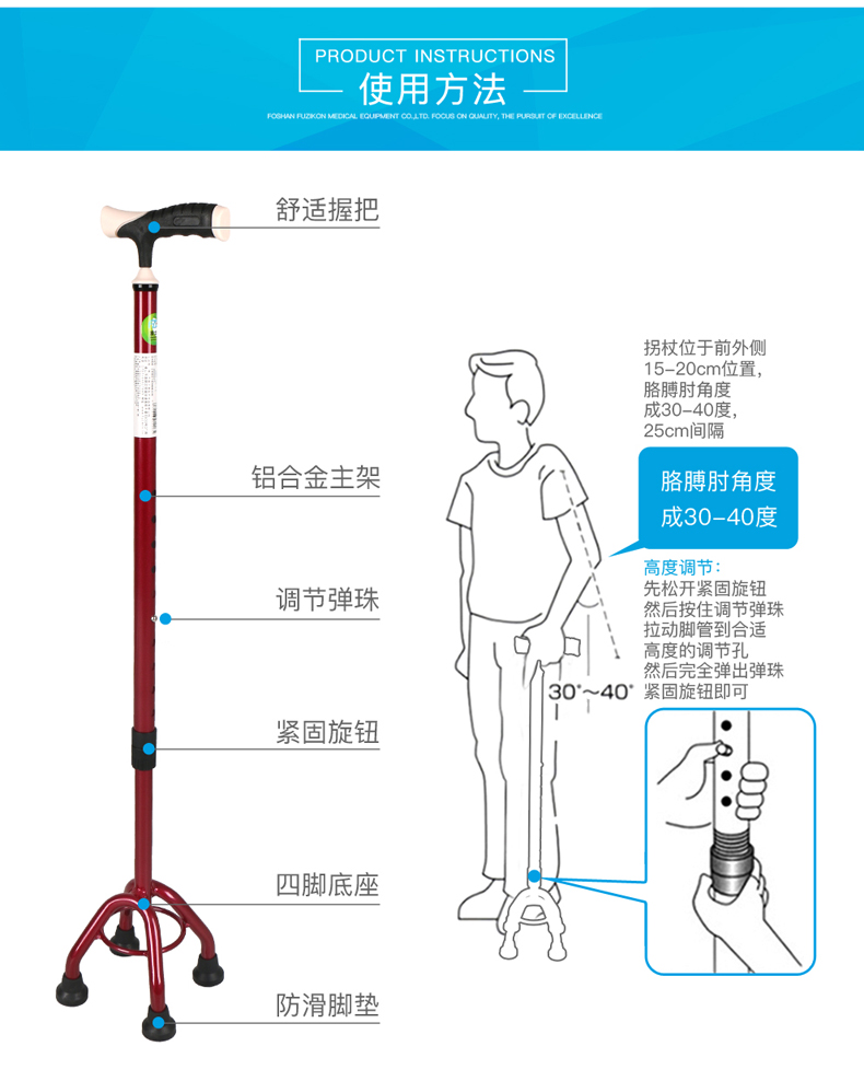 FZK-2058 Aluminum quad cane